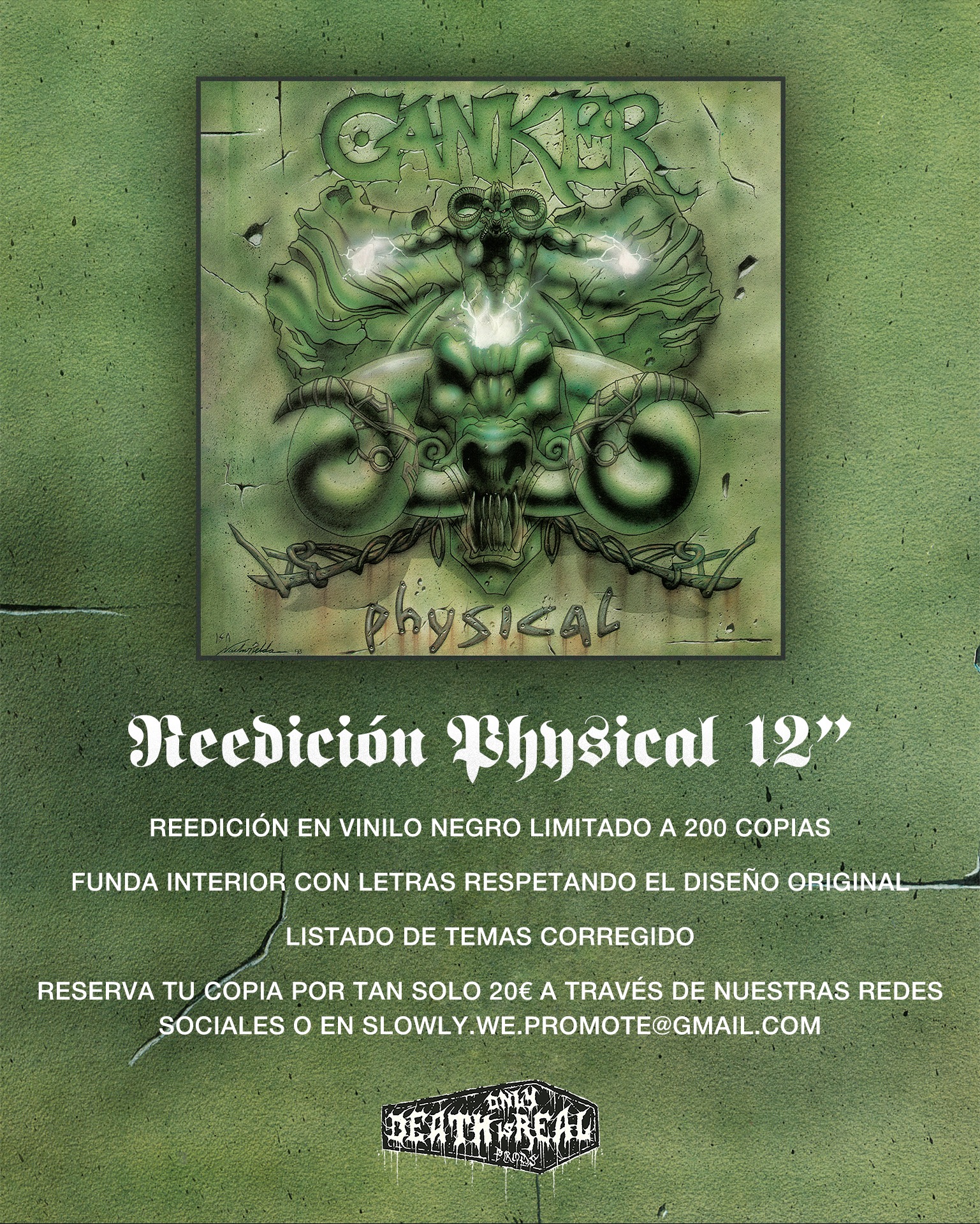Reissue of the debut album of Canker, originally released in 1994, a masterpiece of technical death/thrash metal from Granada, Spain. Produced by Colin Richardson, mixed by Tomas Skogsberg. Finally available on vinyl again, for the first time since its original release. The layout is a replica of the original release, with the tracklist on the back cover now corrected. Released by die-hard maniacs for die-hard maniacs, limited to 200 copies.