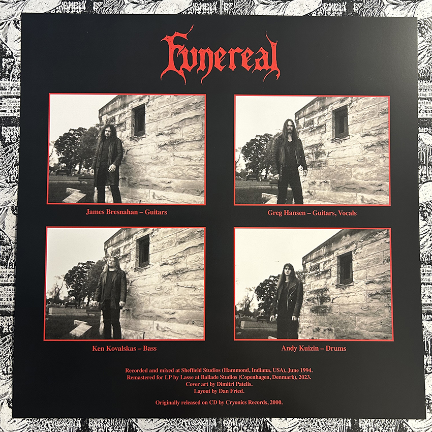 Cult Chicago death metal album, originally recorded in 1994 and released in 2000, now available on vinyl for the first time. Born from the ashses of Contagion, Funereal only released this full-length before vanishing into oblivion as well. Bleak, heavy death metal the Chicago way. Two of their members have also played in Cianide, including Andy Kuizin who’s still the band’s drummer. This is the European pressing released by Extremely Rotten Productions.